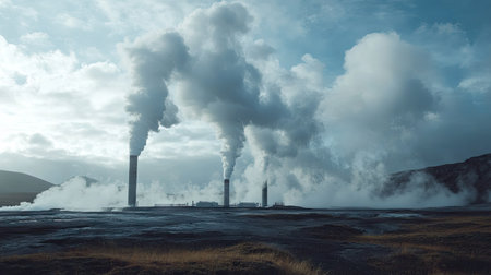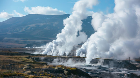 Witness cutting-edge geothermal drilling with innovative steam recovery, showcasing clean earth energy Observe powerful steam rising from this sustainable source, minimizing environmental impact Explore the process of extracting and utilizing geothermal power, a cornerstone of sustainable generation See the future of clean, renewable energy AI Generative
