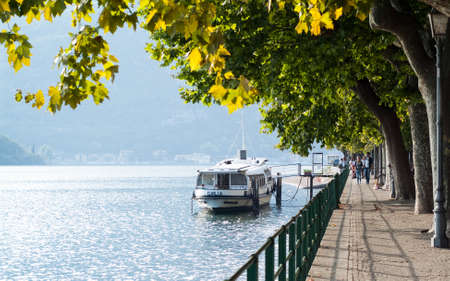 Varenna, Italy - October 27, 2017: Morning in Varenna. Small Town on Lake Como, Italy.
