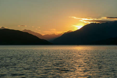 Great sunset in Bellagio Lake. Lombardy, Italy.