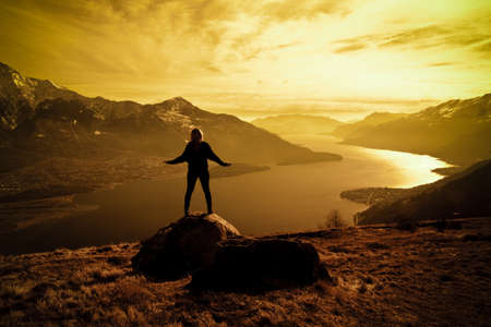 Young woman relaxing on beautiful Garda lake. vacation concept