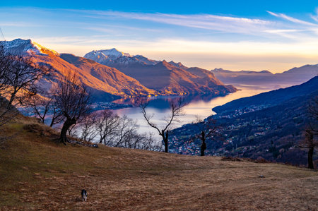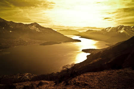 Lake Como, Italy. Panoramic view of Lake Como at sunset.
