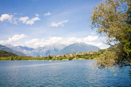 The Como Lake at the town of Fumiarga near Colico with the Valtellina in the background, Italy