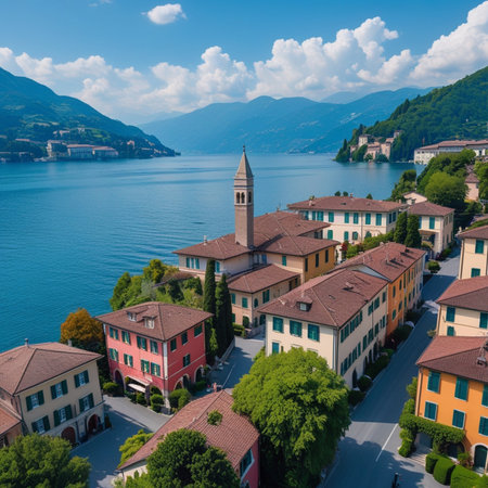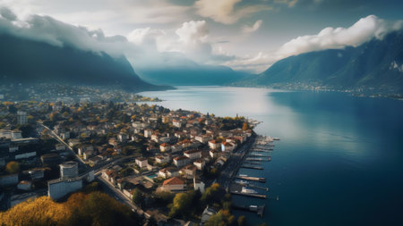 Generative AI : Aerial view of a small settlement near Isella a small village on Annone Lake Lecco Italy