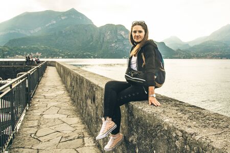 Young traveler woman after quarantine in Bellagio, Lake Como, Lombardy Italy.