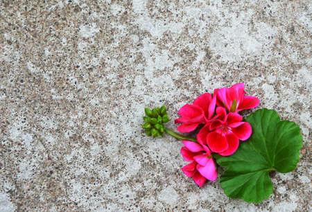 Red pelargonium with green leaf on a grunge background