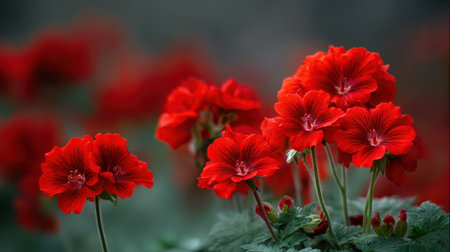 Delicate red geranium flowers background with copy space