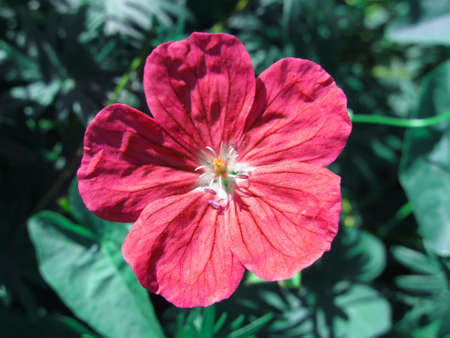 Red garden geranium on garden background