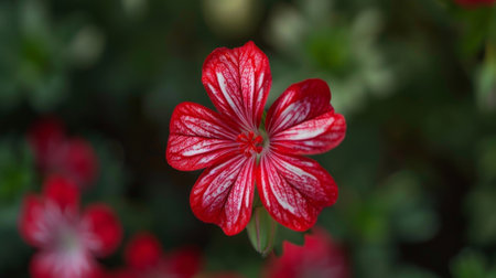 Striking Red and White Geranium Blossoms in Natural Light Garden Setting
