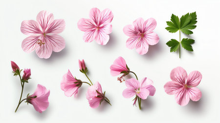 Geranium flowers isolated on white background. Clipping path included.