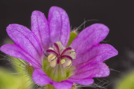 Flower of Geranium robertianum, commonly known as herb-Robert, storksbill, fox geranium, stinking Bob, squinter-pip or Roberts geranium, detail