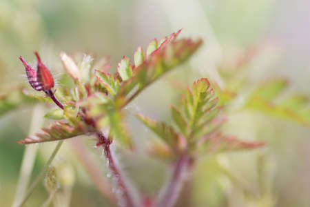 Abstract photography. Small pink flower in forest. Macro nature shooting.