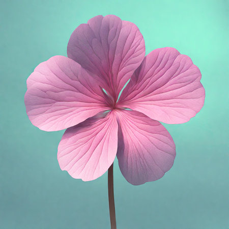 Woman hand holding a single pink purple Tuberous Cranesbill flower close up