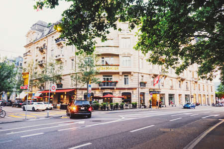 Zurich, Switzerland circa September, 2019: Bahnhofstrasse in Zurich, Switzerland, main downtown street in the city center