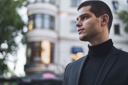 Portrait of a handsome man in a business suit in the city