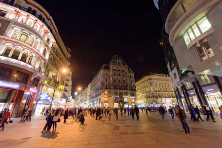 VIENNA, AUSTRIA - APRIL 25: Vienna - famous Graben street at night with rain reflection on the cobbles on April 25, 2009 in Vienna, Austria.