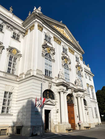 Vienna, Austria - September 15, 2019: Palais Trautson is a baroque palace located at Museumstrasse in the 7th district of Vienna. It was built 1712 by Fischer von Erlach and currently used by the Austrian Ministry of Justice.