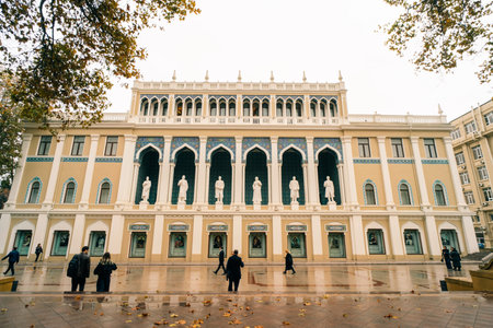 Baku, Azerbaijan - May 8, 2025 - The National museum of Azerbaijan literature named after 12th century Persian poet Nizami Ganjavi on the Fountain Square in Baku