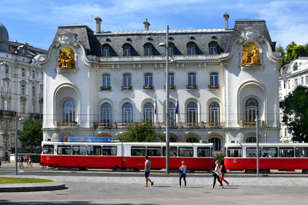 Vienna, Austria- 28 August, 2015: cityscape with old fashioned tram and french embassy building, Schwarzenberg Platz on 28 August in Vienna , Austria