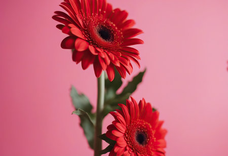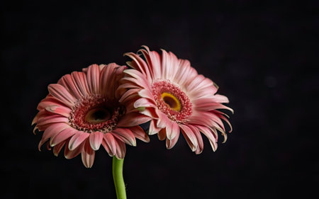 Two pink gerberas daisies on black background