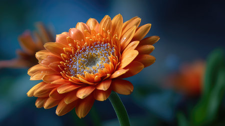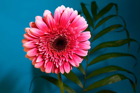Gerbera flower on blue background. Shallow depth of field