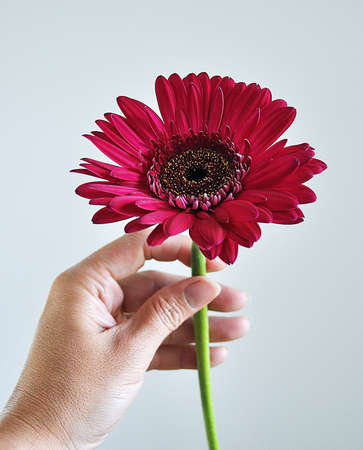 Blooming Passion: A Captivating Portrait of a Person Holding a Red Gerbera Flower