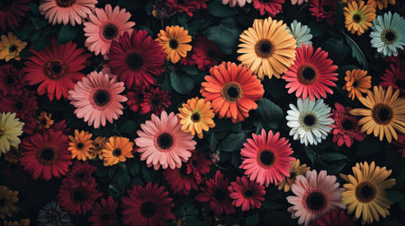 A stunning arrangement of vibrant gerbera daisies and assorted flowers, creating a beautiful floral background perfect for artistic and decorative projects.