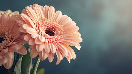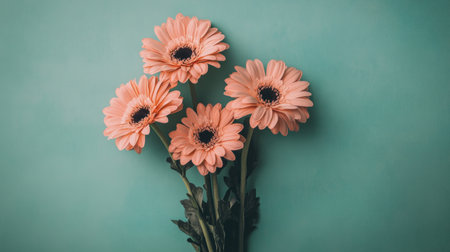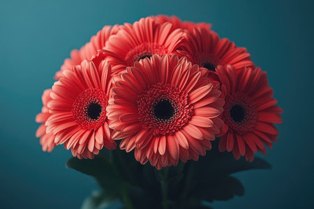 Close-up of Vibrant Coral Gerber Daisies Against Teal Background