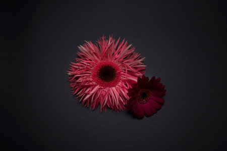 Gerbera and chrysanthemum on black background.