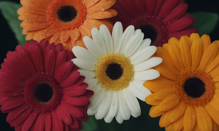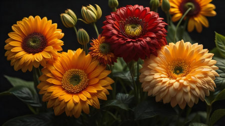 Beautiful gerbera flowers on a dark background. Close-up. generative ai