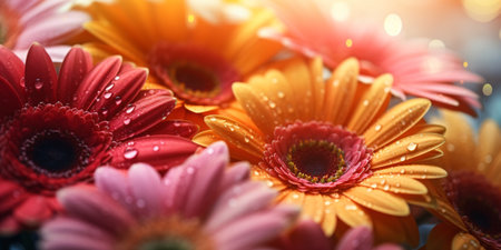Beautiful gerbera flowers with water drops, close-up created with AI