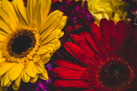 Colorful gerbera flowers as a background, close-up
