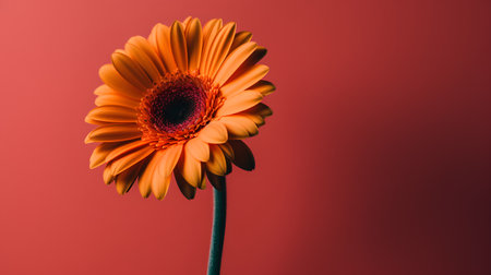 Orange gerbera flower on a red background. Minimal style.