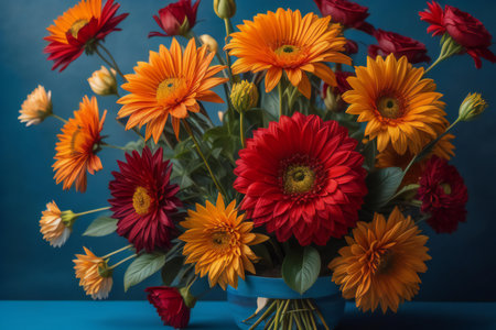 Bouquet of gerbera flowers on a blue background.