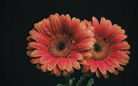 beautiful gerbera flowers with water drops on petals - vintage effect