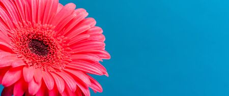 Colorful gerbera flower on blue background. Copy space