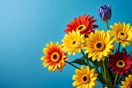 bouquet of colorful gerbera flowers on a blue background. generative ai