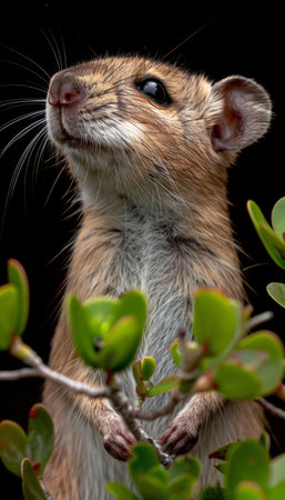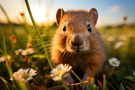 This captivating portrait captures the natural inquisitiveness of a rodent amid lush greenery The creature's keen gaze and adorable demeanor are a testament to the beauty and wonder of wildlife in its natural habitat The vibrant foliage and soft light create a serene atmosphere, inviting us to marvel at the beauty of nature and the curious spirit of its inhabitants AI Generative