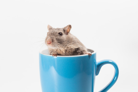 Cute young male rodents isolated on white, macro closeup, close-up with copy space