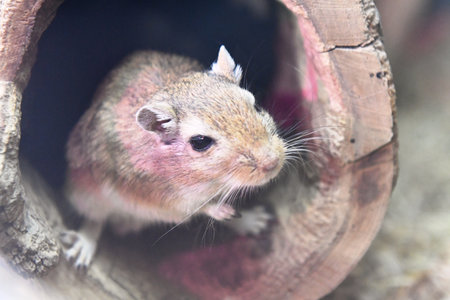 Close-up portrait of Mongolian gerbil or Mongolian jird (Meriones unguiculatus)