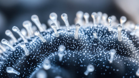 a close-up portrait photograph showcasing the intricate details of unknown chlamydia trachomatis biological virus alien flowers. the image captures the brittle yet beautiful and elegant nature of these flowers, with vivid contrast and depth of field. shot on a 100mm lens at f/2.0, the photo exhibits rich black tones and crisp details, enhanced by natural lighting. this realistic and impressive 8k uhd image is bathed