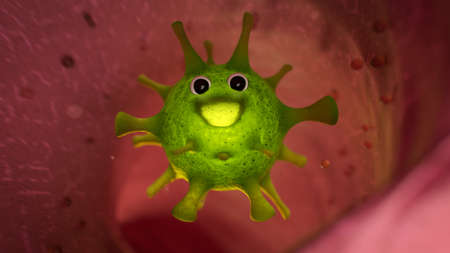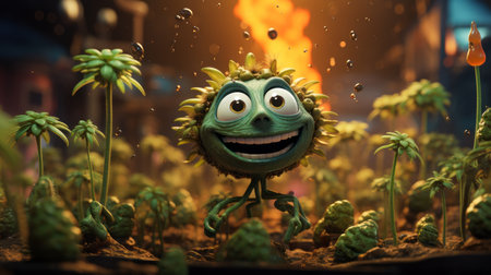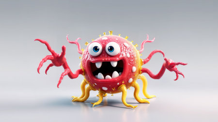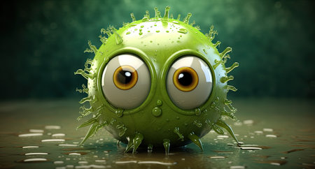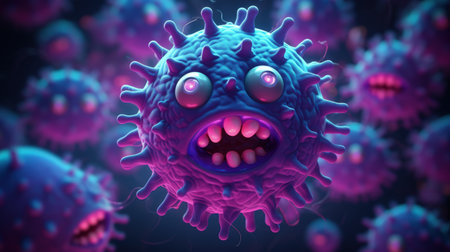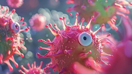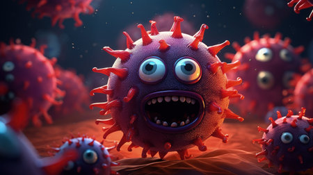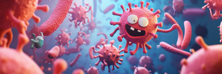 Cartoon characters cute, funny evil viruses, whimsical and infectious, creative and humorous animation of infectious microorganisms in comical and imaginative scenarios