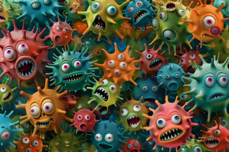 fabulous colorful viruses, parasites or pathogenic microbes in the microcosm with funny faces