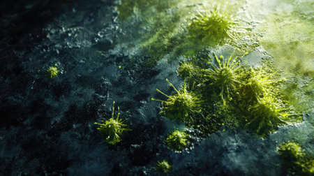 a close-up portrait photograph showcasing the intricate details of unknown streptococcus pyogenes biological virus alien flowers. the image captures the brittle yet beautiful and elegant nature of these flowers, with rich and vivid contrast. shot on a 100mm lens at f/2.0, the photo exhibits a crisp and realistic quality, enhanced by the depth of field and natural lighting. this impressive 8k uhd image is a