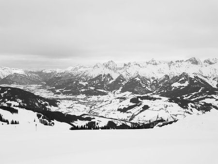 Mountains with snow in winter. Ski resort Brixen im Thalef, Tyrol, Austria