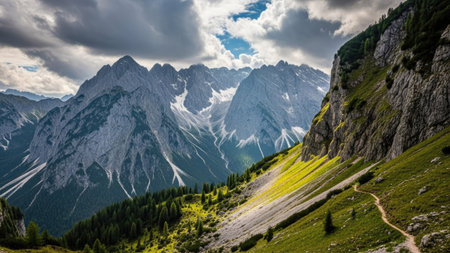 View of the Bavarian Alps. The mountain range is called Krawendel and is located near Mittenwald, Germany. Bad mountain weather outdoor concept.