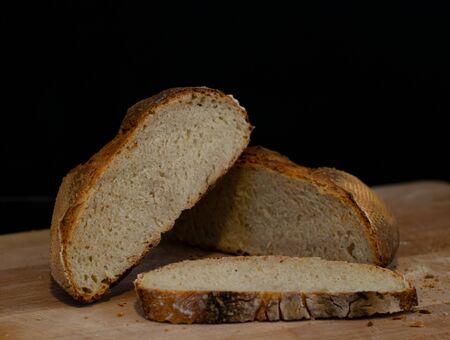 Natural background. Still life- cut slices of rye bread on a wooden table
