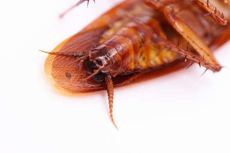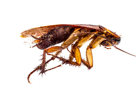 Cockroach on white background, insect cockroaches dead on floor in home get rid cockroach bug concept