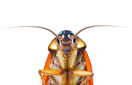 Macro photo,Closeup cockroach on white background for Insecticide product concept selective focus,Winged insect