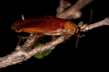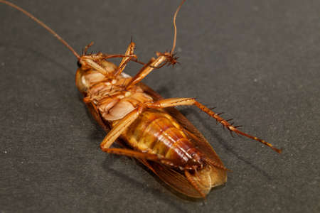 View of a freshly dead German cockroach (a.k.a. a croton bug), Blatella germanica, a common household pest in Europe and around the world.