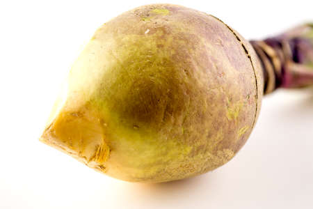 Pointy shaped end of swedish turnip isolated on white